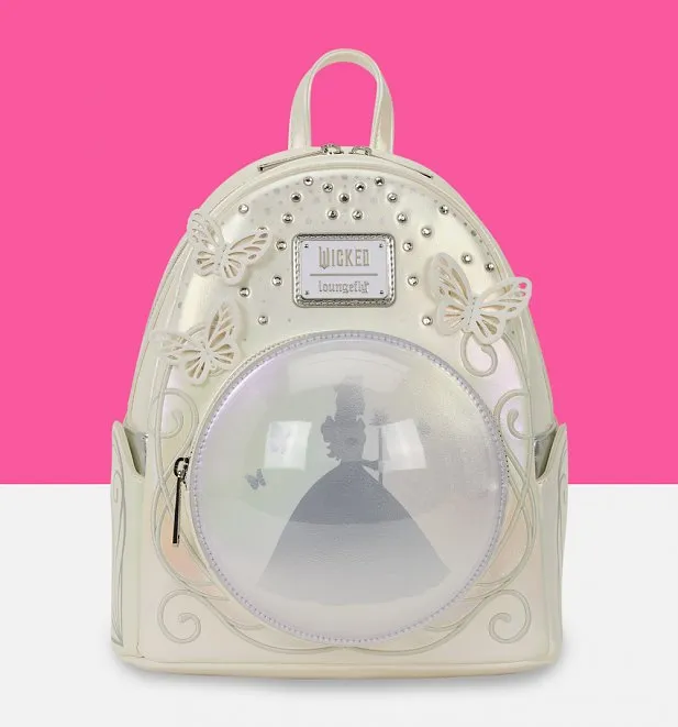 Celebrate one of the most magical moments in Wicked: Part Two with this enchanting Loungefly mini backpack, inspired by Glinda's unforgettable wedding dress. Crafted in a dreamy all-white design, it's adorned with delicate butterfly motifs that nod to this pivotal scene in the sequel. Made from faux leather with layers of tulle, metallic ink accents, debossed patterns, and shimmering sequins, it captures the elegance and theatrical flair of Glinda's big moment. Finished with embroidered details and pearlescent touches, this bag is a true showstopper – the perfect way to carry a piece of Oz with you wherever you go.