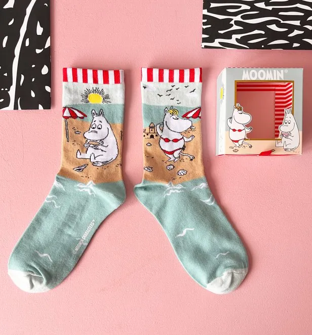 Ahh, summer. Endless warm days, trips to the beach, the sand between your toes… and the occasional downpour or gust of wind that reminds you it won't last forever. Fortunately, these beach-inspired socks featuring Tove Jansson's much-loved Moomins are just the pair to reach for when those less-than-balmy days roll in. With a cheerful seaside scene running across the design, they bring a little bit of that summer feeling with you – whatever the weather's doing.