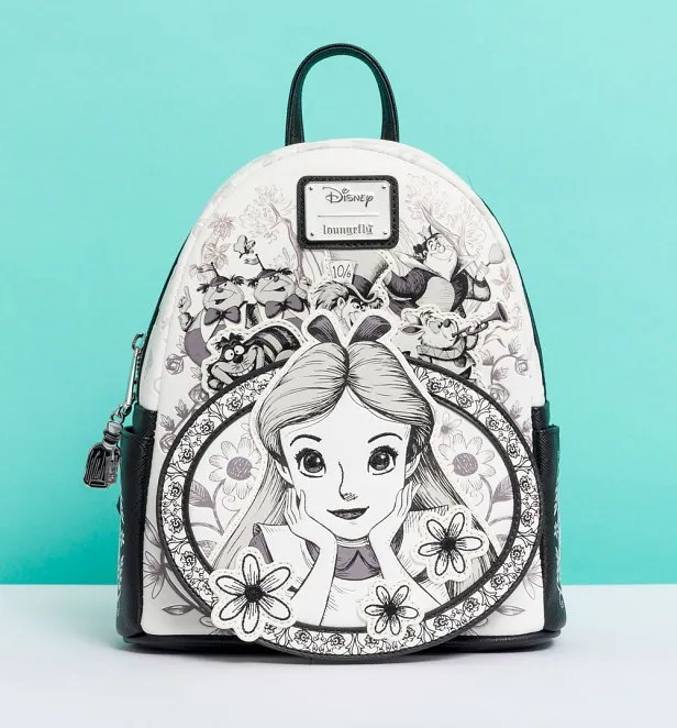 • Loungefly Disney Alice In Wonderland Sketch Black and White Mini Backpack