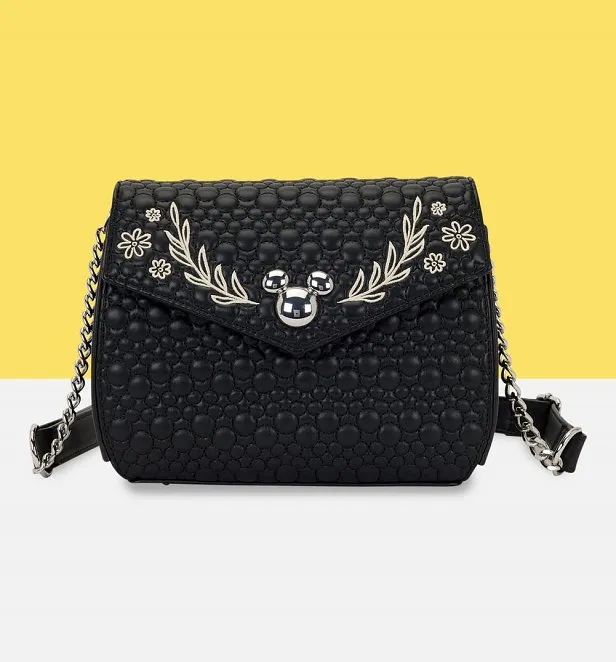 There's no mistaking the Disney magic on this different yet modish crossbody bag from Loungefly. A sketchbook style design paying homage to Mickey Mouse adorns the faux leather all over print, as well as embroidered details and a metal “mouse ears” charm on the front flap, and applique and quilted elements and an adjustable faux leather and chain mail shoulder strap. It'd make the perfect partner with the Mickey Mouse sketched style bifold wallet!