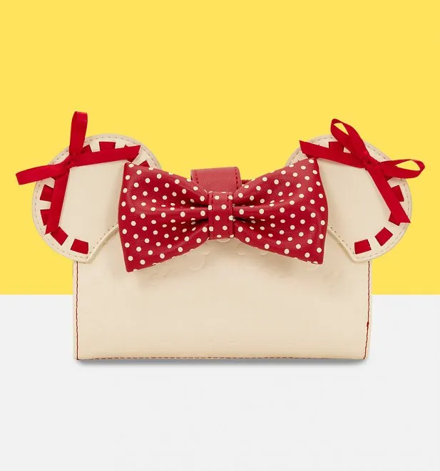 Bring a bit of Minnie Mouse magic to your everyday essentials with this charming flap wallet from Loungefly. Crafted from faux leather, the design features Minnie's iconic mouse ears adorned with red satin ribbons, finished with a standout 3D red and white polka dot hair bow at the centre. Embossed and printed detailing adds depth to the design, while inside you'll find plenty of space to keep your cards, notes and valuables neatly organised. A perfect finishing touch to any look – especially when paired with a matching bag from the Rock The Dots collection.