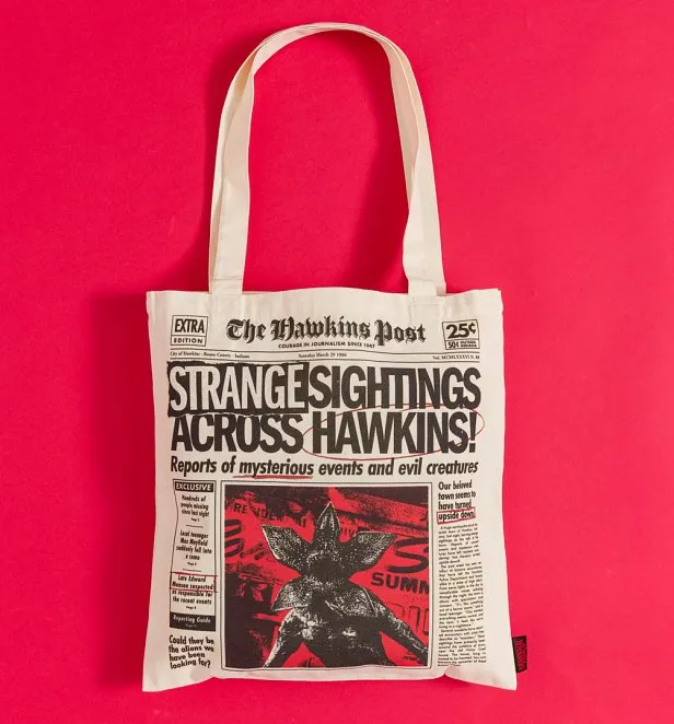 Carry Hawkins' headlines wherever you go with this Stranger Things Hawkins Post Shopper Tote! Featuring a vintage newspaper front page with the chilling “STRANGE SIGHTINGS ACROSS HAWKINS” headline and a photo of the Demogorgon, this tote is perfect for fans who like their 80s nostalgia served with a side of supernatural chaos. Spacious, stylish, and full of retro vibes: perfect for everyday adventures or sneaky trips to the Upside Down.