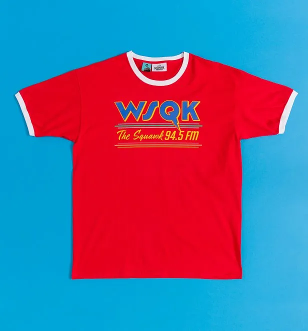 Some very unusual occurrences are set to go down at Hawkins radio station WSQK - also known as The Squawk 94.5 FM - in the fifth and final season of the hit Netflix supernatural show Stranger Things. Thankfully, you'll be well attired for any action that goes on, with this red ringer tee, featuring the station's logo printed on the front.