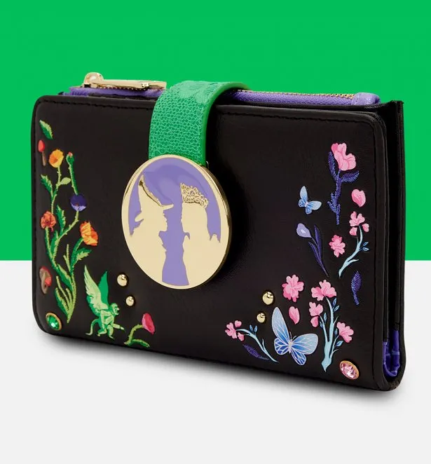 Wicked fans looking for the ideal place to keep their valuables safe on their travels will love this beautifully designed floral Loungefly wallet. Set against rich black faux leather, the intricate floral embroidery and lace trim feel almost like costume detailing straight from the stage at Shiz. The front flap is finished with faux gems, gold beads and a circular emblem secured with a 3D moulded metal rivet – subtle, but unmistakably Wicked.